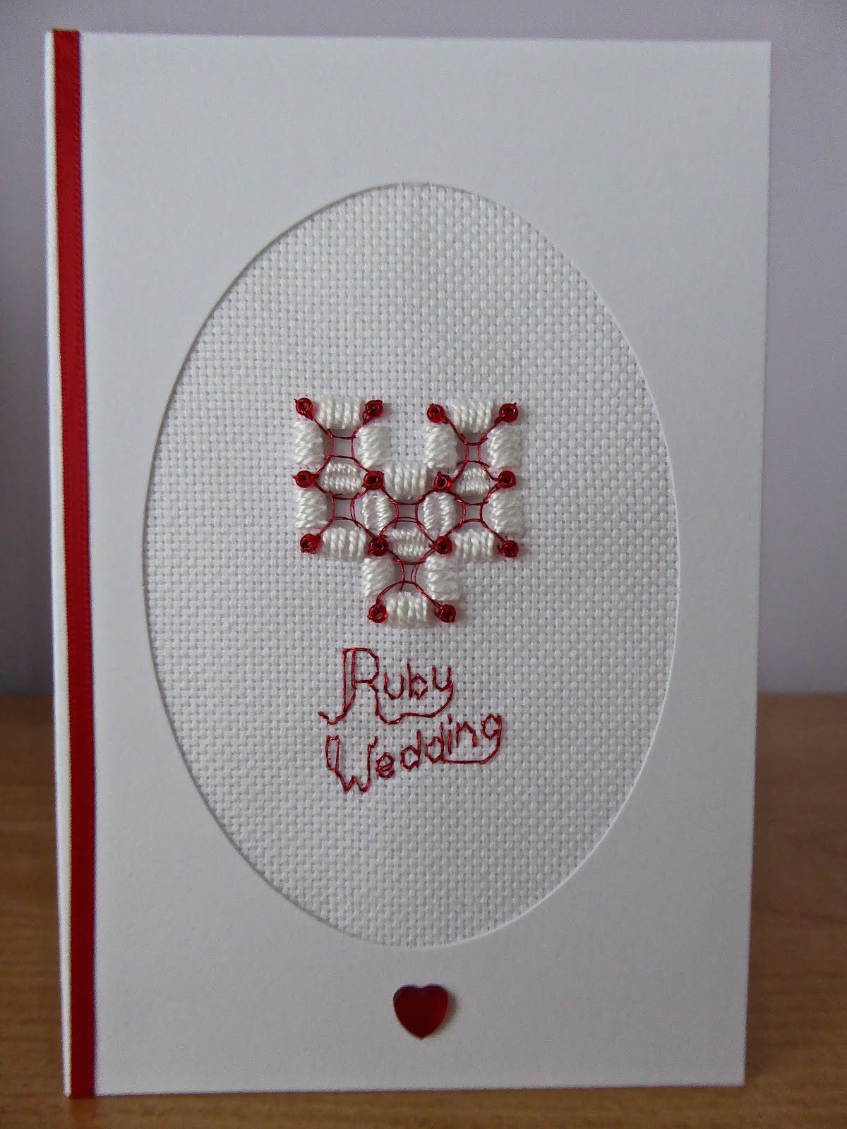 Here is a Ruby Wedding Anniversary card for my friend Joyce. I did not have very much time to do this one, but managed to quickly stitch this in time.